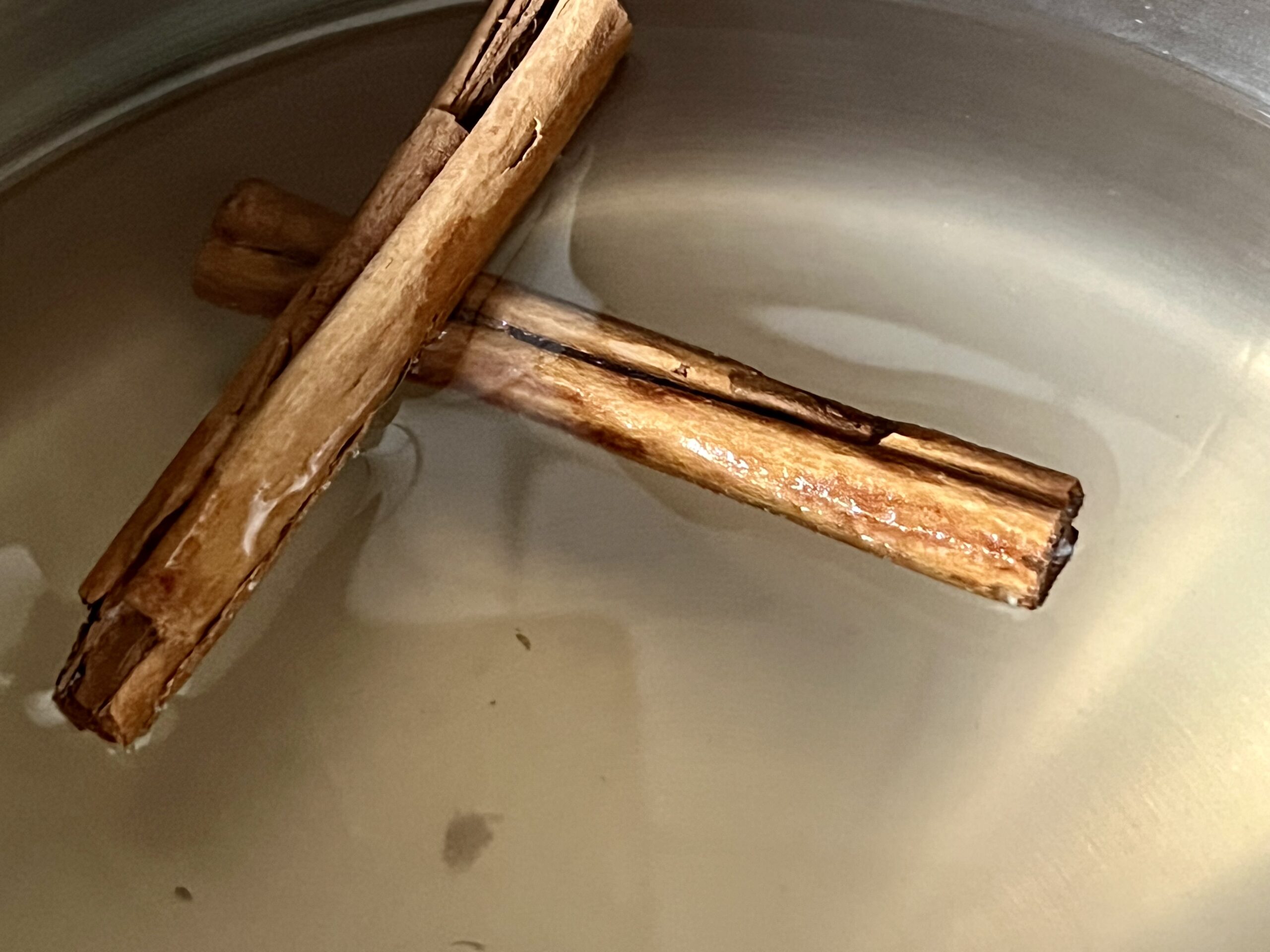 Am nächsten Tag die Feigen aus dem Sirup nehmen und diesen mit der Zimtstange und ein paar Streifen dünn abgeschälter Zitronenschale kochen, bis er ein bisschen eindickt. Dabei reduziert sich die Flüssigkeit um mindestens die Hälfte.