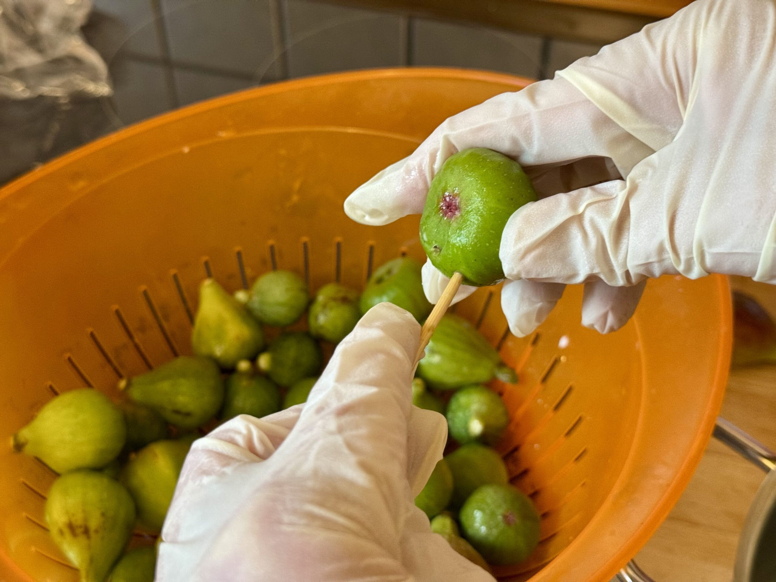 Die Feigen werden von allen Seiten angepiekst, damit später der Sirup gut in die Früchte ziehen kann.